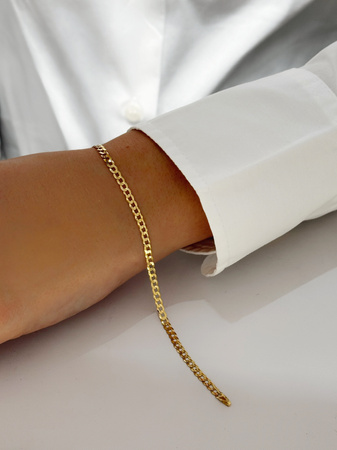 - Klasyczna bransoletka o splocie typu pancerka, wykonana ze złota próby 585. Błyszcząca i elegancka, idealna na co dzień i na specjalne okazje.