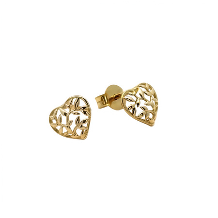 Złote kolczyki serduszka ażurowe, zapinane na sztyfty. Biżuteria wykonana ze złota próby 585, która subtelnie podkreśli styl i będzie idealnym upominkiem na każdą okazję.